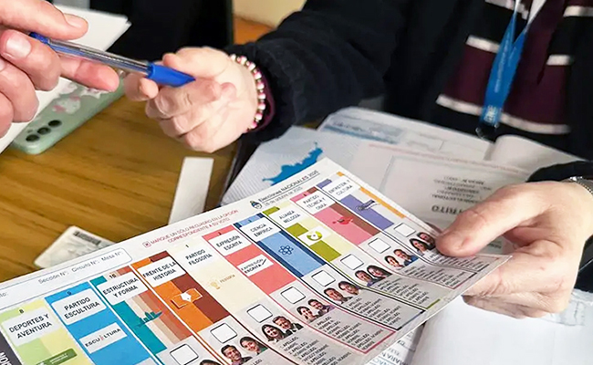Una vez en la mesa, recibirán la boleta desde un talonario troquelado y una lapicera indeleble. Detrás de un biombo de cartón, el ciudadano deberá marcar la opción con una cruz y luego doblar la boleta para depositarla en la urna.